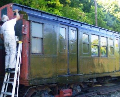 Car 825 was built in 1932 by the American Car and Foundry Company in Berwick, Pennsylvania and ran for over 40 years, serving various subway lines in New York City. In 1974, car 825 was repainted into a silver and blue paint scheme used on the New York City Transit Authority at the time. It was also renumbered no. 1677. It retired from passenger service in early 1977.